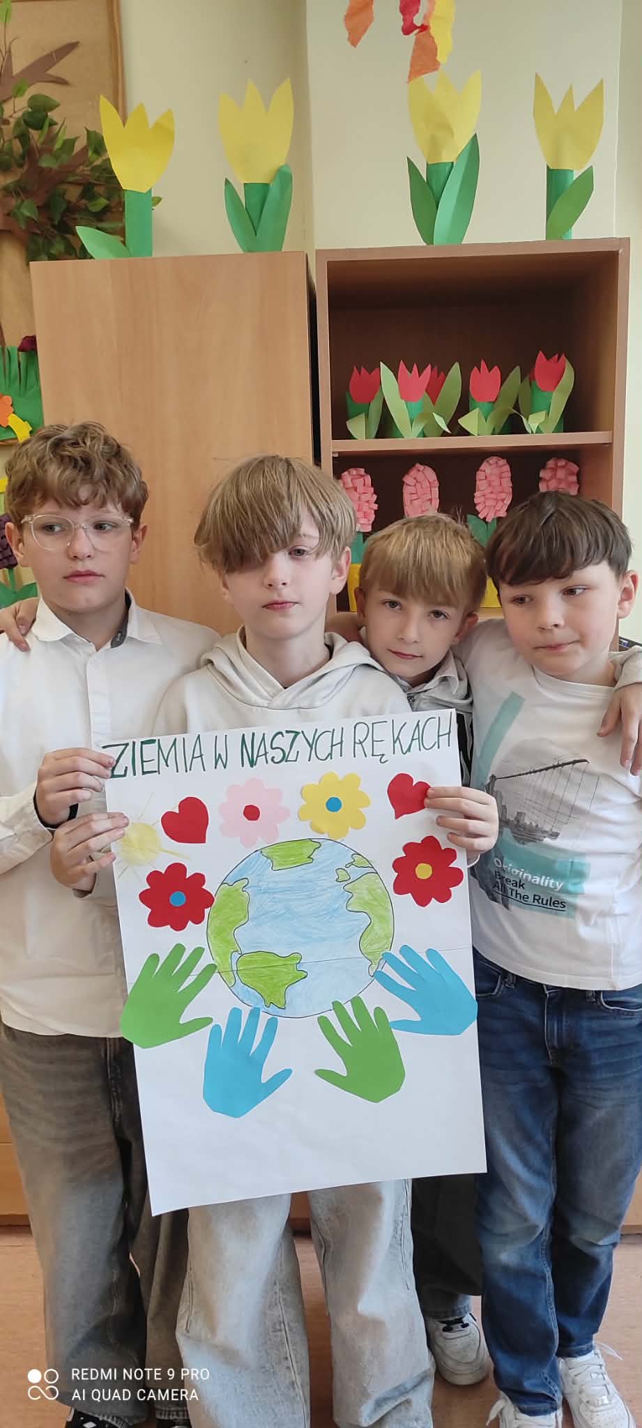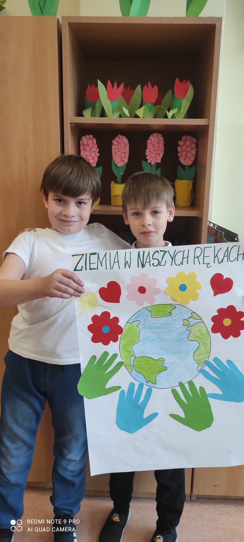 To doskonała okazja do nauki przez zabawę. Świetliczanie uczą się dbać o planetę poprzez proste czynności, takie jak oszczędzanie wody, segregacja śmieci, dbanie o przyrodę, co buduje ich świadomość ekologiczną od najmłodszych lat. Działania te  miały na celu podkreślenie jak ważne  jest nasze zaangażowanie  na rzecz ochrony naszej planety. Z tej okazji został wykonany  plakat pod hasłem „Ziemia w naszych rękach”.