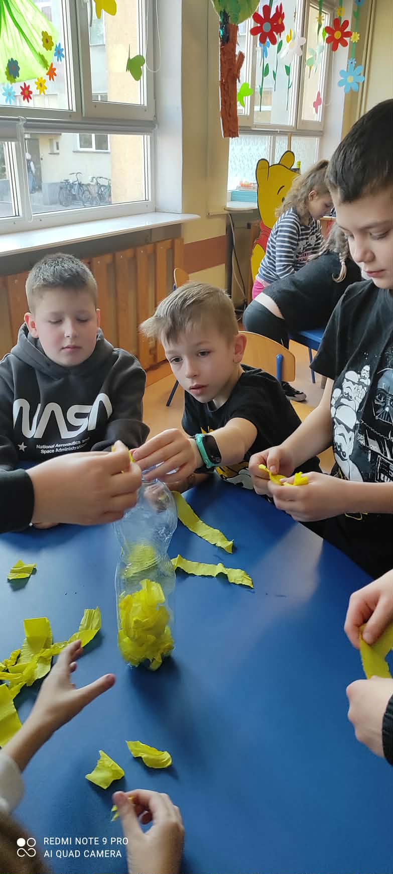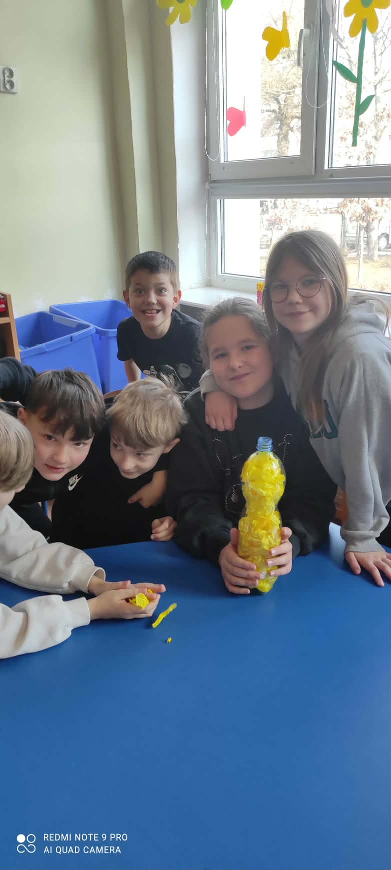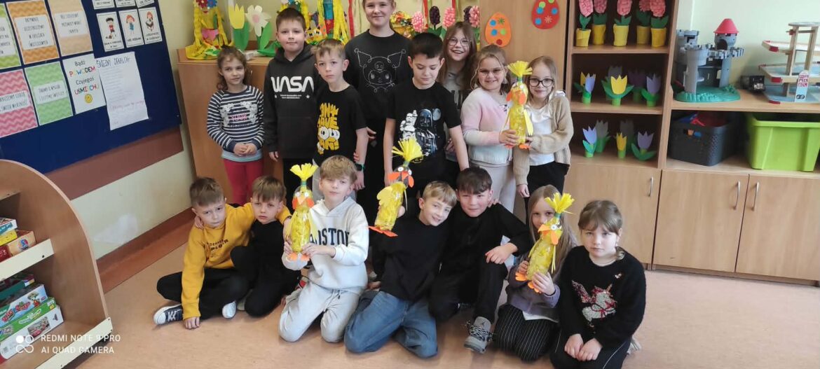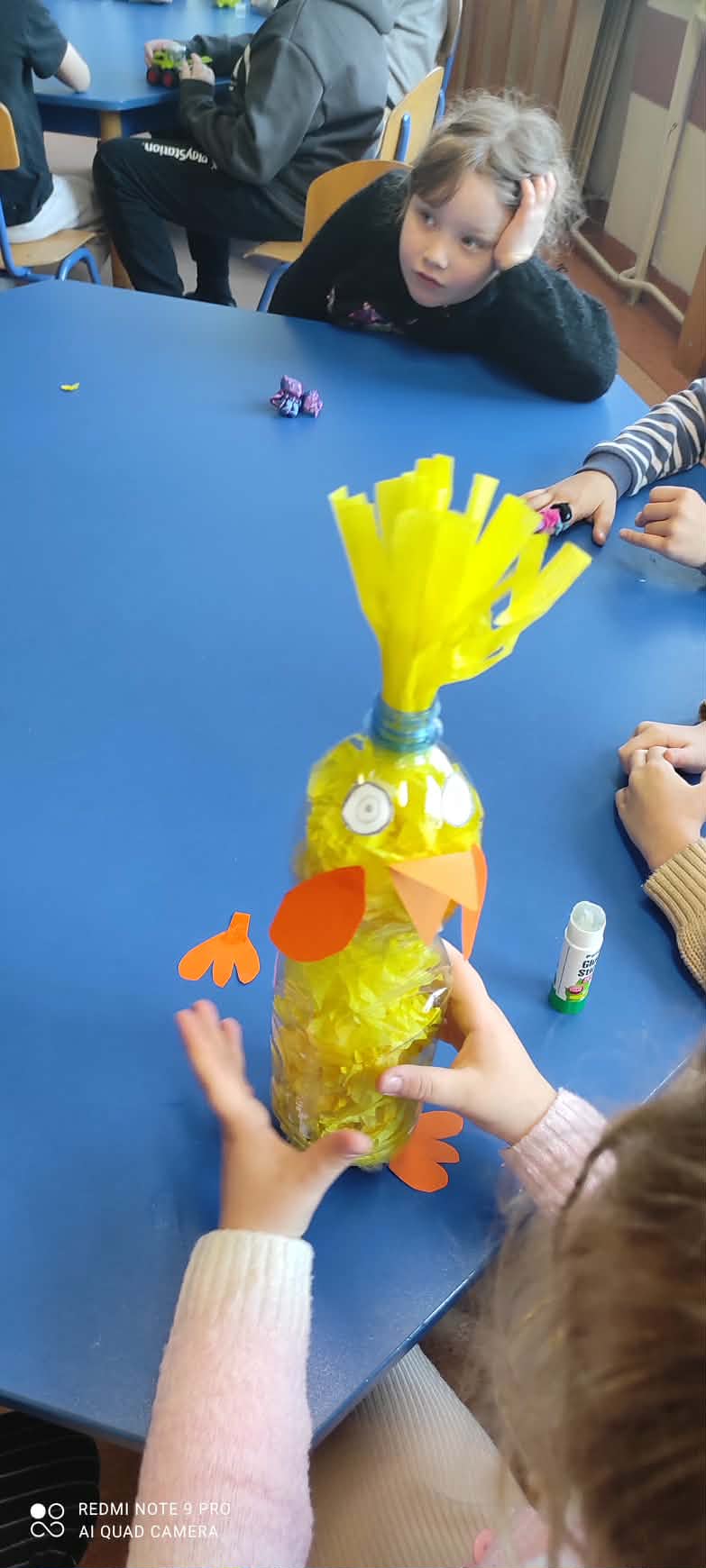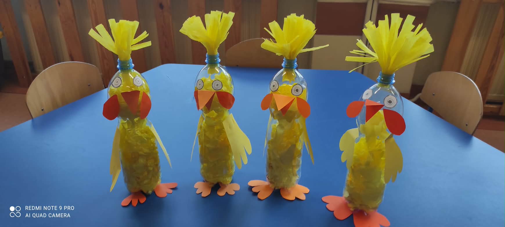 W ramach programu Laboratoria Przyszłości w świetlicy szkolnej odbyły się zajęcia techniczne z wykorzystaniem materiałów i sprzętu zakupionego ze środków programu pod hasłem „Recyklingowy kurczak”. Świetliczanie pracowali w grupach. Praca w grupach to skuteczna metoda integracji i budowanie pozytywnych relacji. Kurczak powstał z plastikowej butelki, bibuły i papieru kolorowego.
