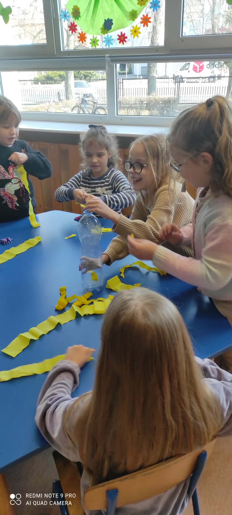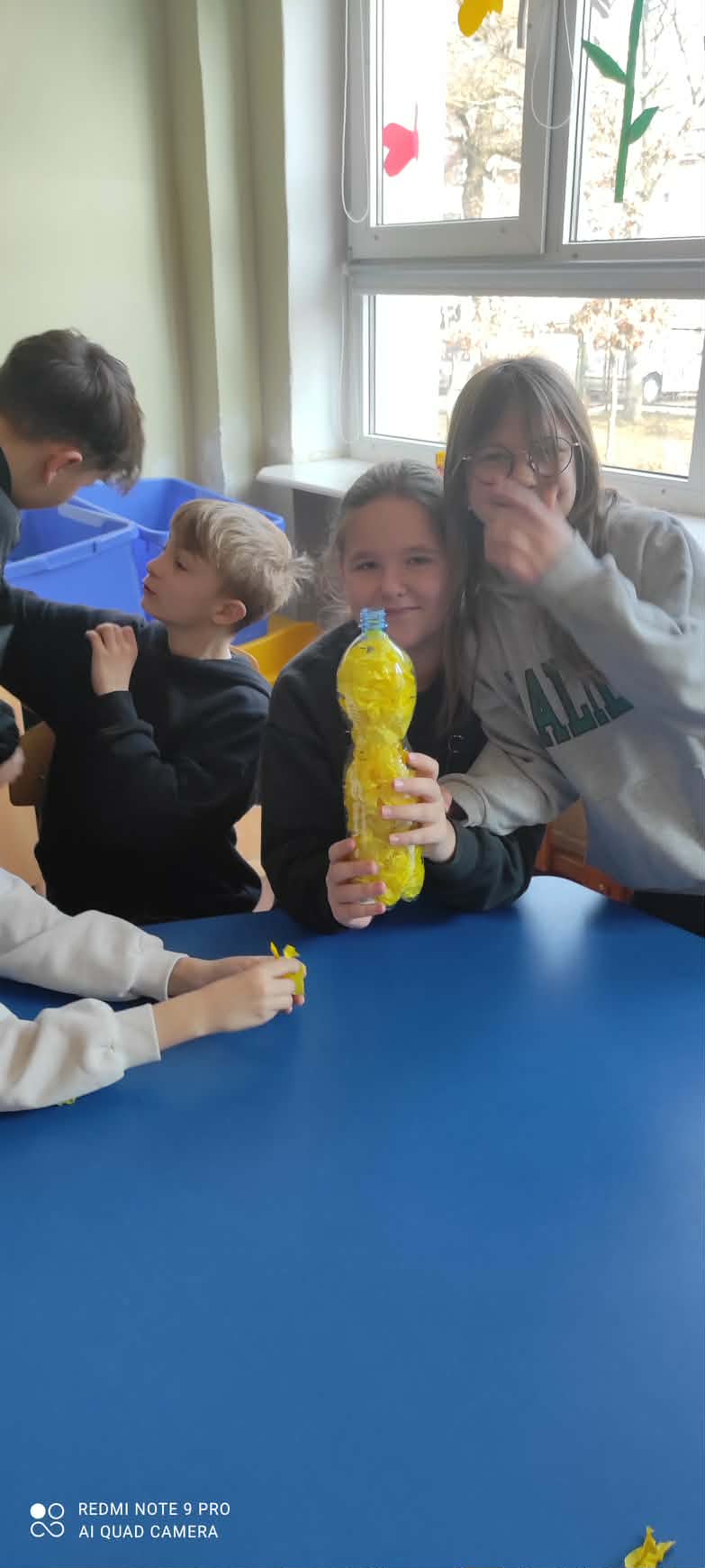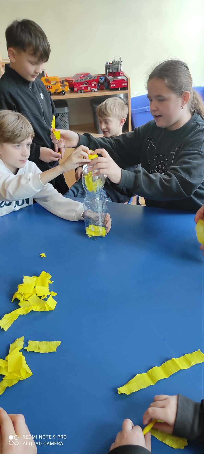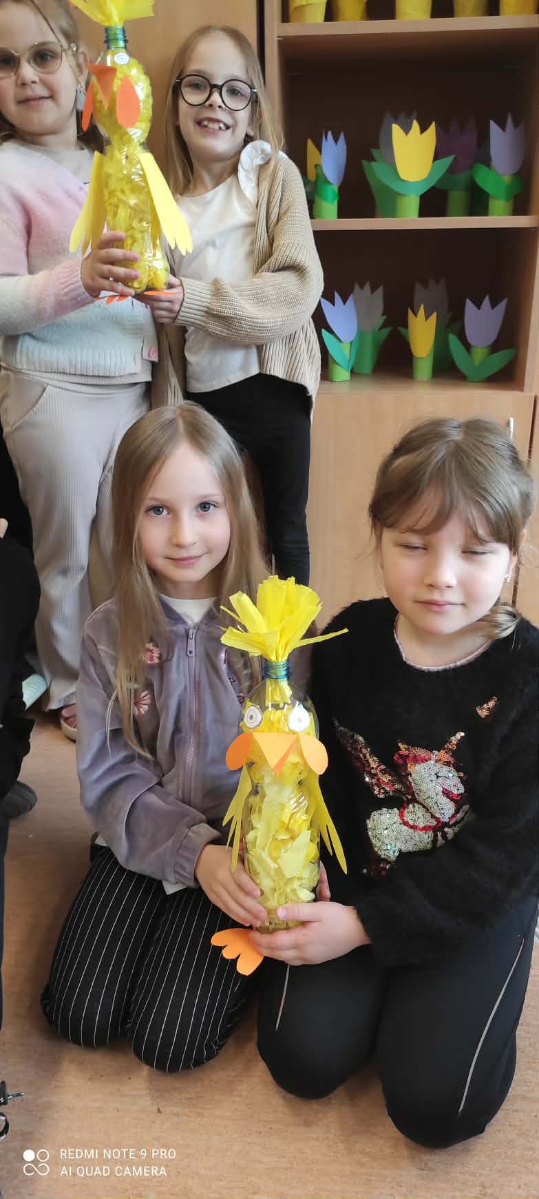 W ramach programu Laboratoria Przyszłości w świetlicy szkolnej odbyły się zajęcia techniczne z wykorzystaniem materiałów i sprzętu zakupionego ze środków programu pod hasłem „Recyklingowy kurczak”. Świetliczanie pracowali w grupach. Praca w grupach to skuteczna metoda integracji i budowanie pozytywnych relacji. Kurczak powstał z plastikowej butelki, bibuły i papieru kolorowego.