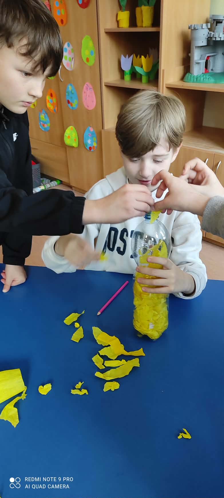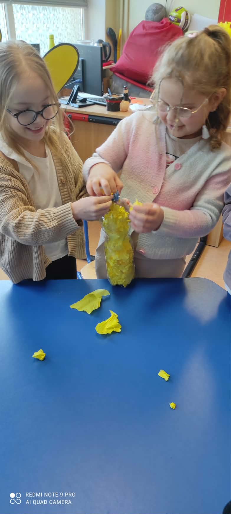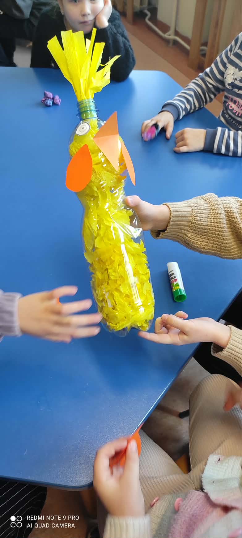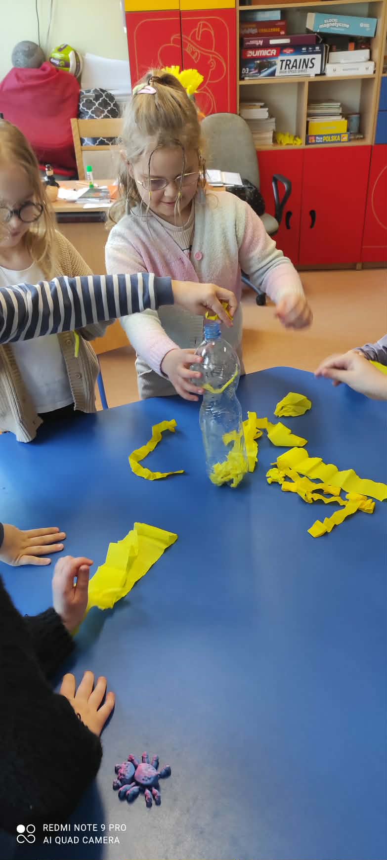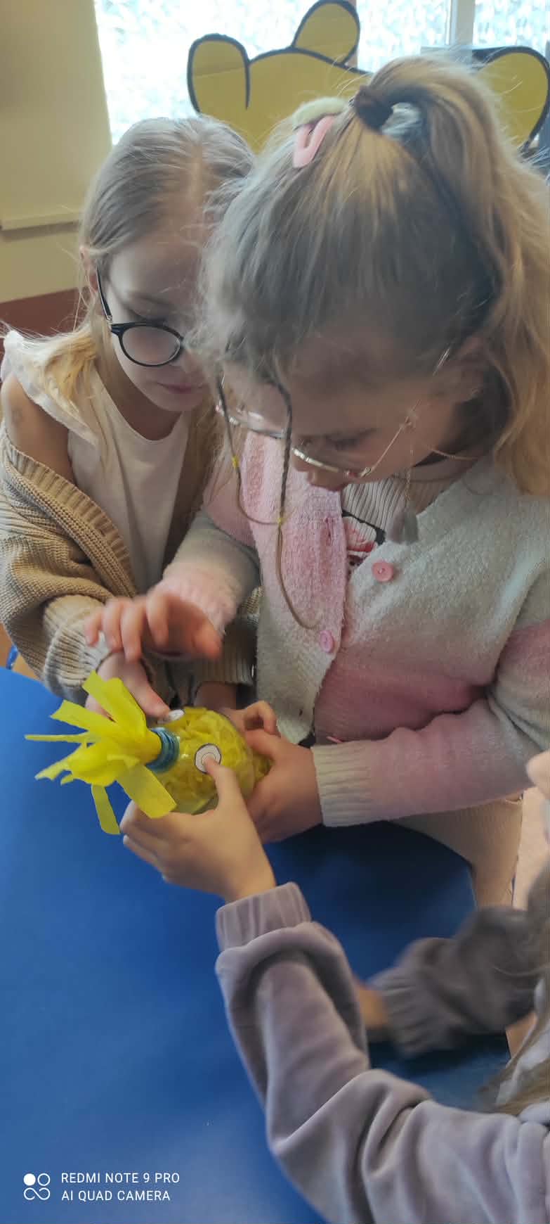 W ramach programu Laboratoria Przyszłości w świetlicy szkolnej odbyły się zajęcia techniczne z wykorzystaniem materiałów i sprzętu zakupionego ze środków programu pod hasłem „Recyklingowy kurczak”. Świetliczanie pracowali w grupach. Praca w grupach to skuteczna metoda integracji i budowanie pozytywnych relacji. Kurczak powstał z plastikowej butelki, bibuły i papieru kolorowego.
