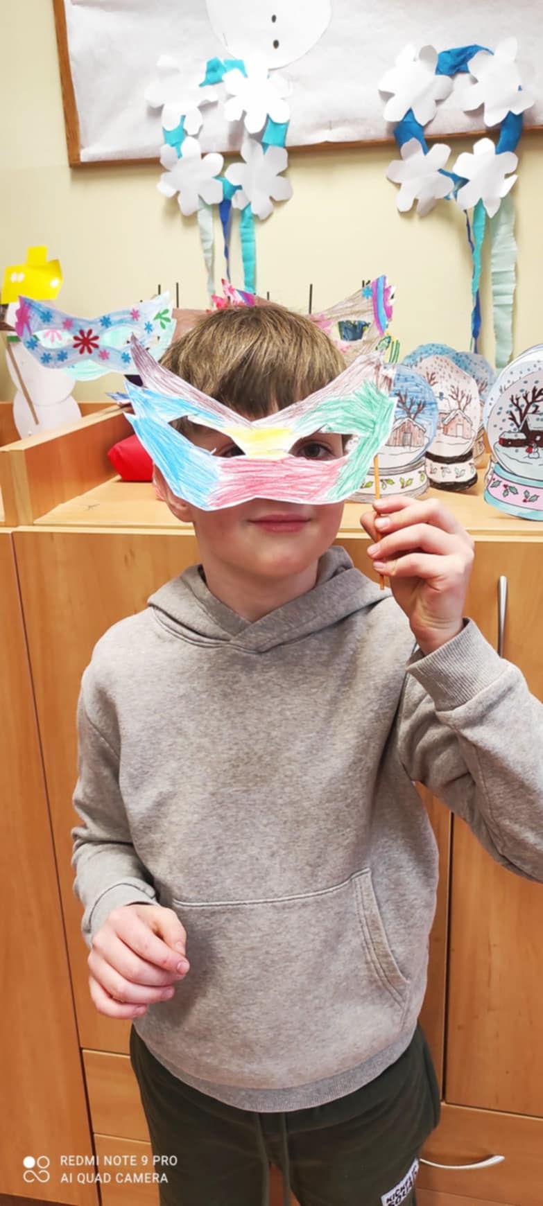 Karnawał to okres zabawy i radości, a przede wszystkim balów i przyjęć, na których nie może zabraknąć bajkowych postaci i kolorowych masek. Świetliczanie samodzielnie wykonali maski karnawałowe podczas zajęć plastyczno-technicznych. Potrzebne były tylko materiały plastyczne, trochę wyobraźni i zapału. Dzieci były bardzo zaangażowane i zadowolone. Udało im się wykonać wspaniałe prace, które potem wykorzystały do świetnej zabawy!