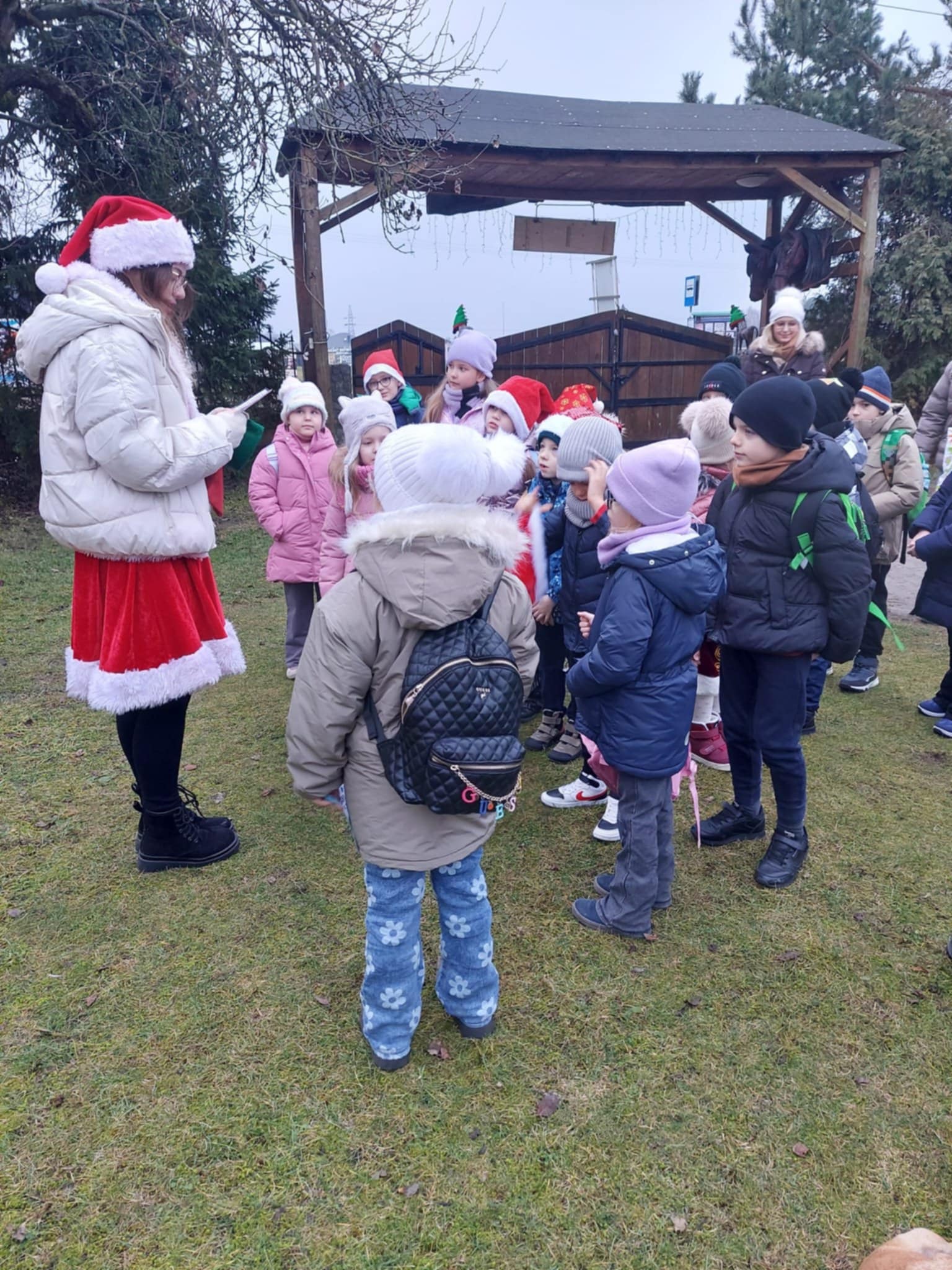 4 grudnia, uczniowie klasy I c wybrali się do stadniny koni Mustang w Dzbeninie, która na czas ich wizyty zamieniła się w Grotę Świętego Mikołaja. Tu, na uczestników, czekało moc atrakcji. Najpierw dzieci musiały pomóc Mikołajowi w odnalezieniu podków, które zgubiły zapracowane renifery, Następnie z ochotą pakowały prezenty do wielkich worków. Ostatnim zadaniem było wykonanie pięknej ozdoby świątecznej. Na koniec przyszedł czas na spotkanie z Mikołajem. Każde z dzieci o mogło z Nim porozmawiać i odebrać upominek. Podczas spotkania dzieci wrzucały do świątecznej skrzynki listy do Świętego Mikołaja. Kto wie, może spełni On marzenia dzieci i przyniesie wymarzony prezent w Wigilię?