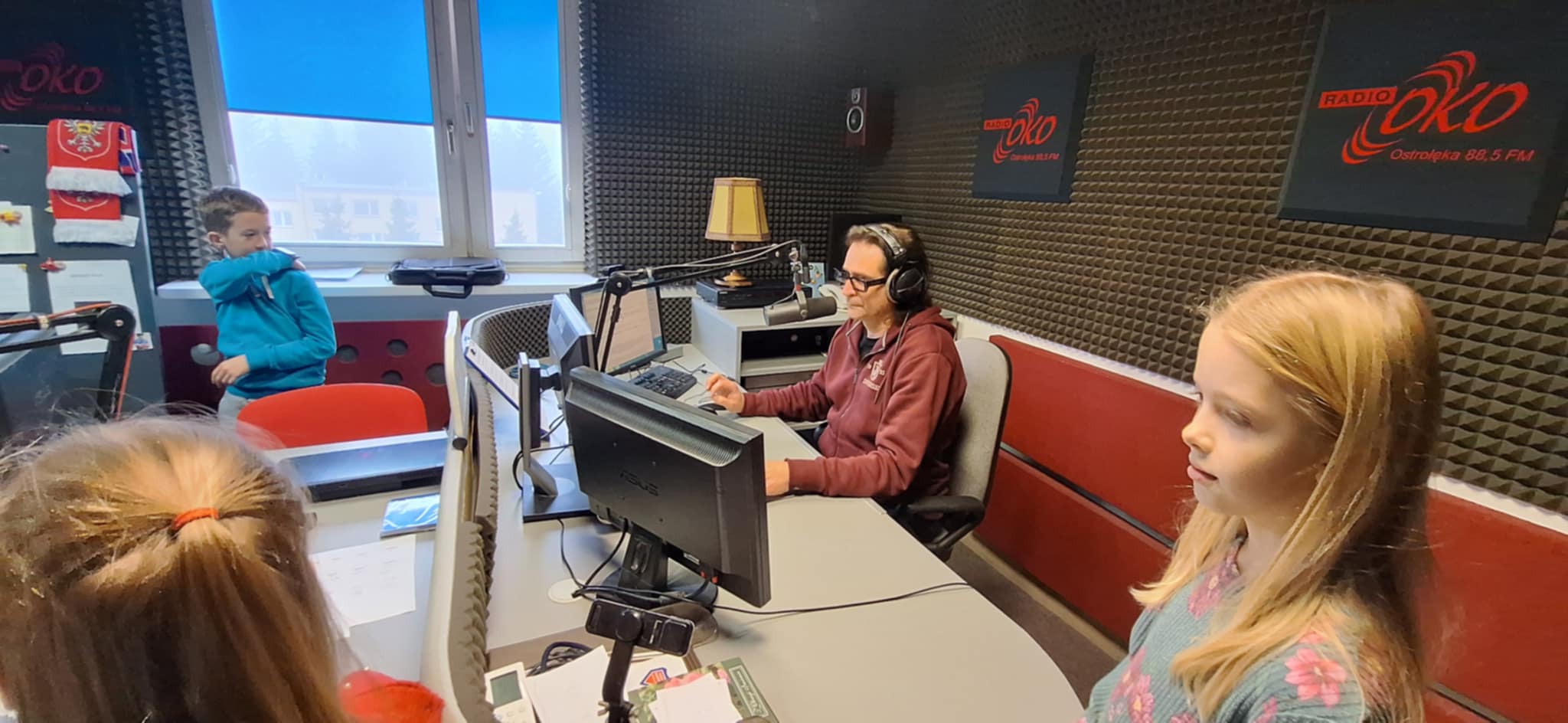 2 grudnia klasa 3C, korzystając z zaproszenia Pana Piotra Grzyba, które otrzymali podczas Międzyszkolnego Konkursu Pieśni Legionowych odwiedziła redakcję Radia Oko. Uczniowie mieli okazję zobaczyć, jak wygląda praca w radiu „od kuchni”. Obserwowali przygotowywanie i prowadzenie wiadomości oraz mogli uczestniczyć w tworzeniu prognozy pogody. Następnie Pan Piotr przeprowadził z uczniami krótki wywiad, a także umożliwił im przekazanie swoim bliskim pozdrowień na antenie.