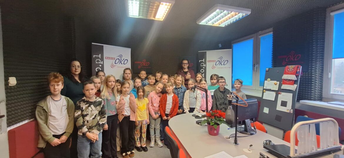 2 grudnia klasa 3C, korzystając z zaproszenia Pana Piotra Grzyba, które otrzymali podczas Międzyszkolnego Konkursu Pieśni Legionowych odwiedziła redakcję Radia Oko. Uczniowie mieli okazję zobaczyć, jak wygląda praca w radiu „od kuchni”. Obserwowali przygotowywanie i prowadzenie wiadomości oraz mogli uczestniczyć w tworzeniu prognozy pogody. Następnie Pan Piotr przeprowadził z uczniami krótki wywiad, a także umożliwił im przekazanie swoim bliskim pozdrowień na antenie.