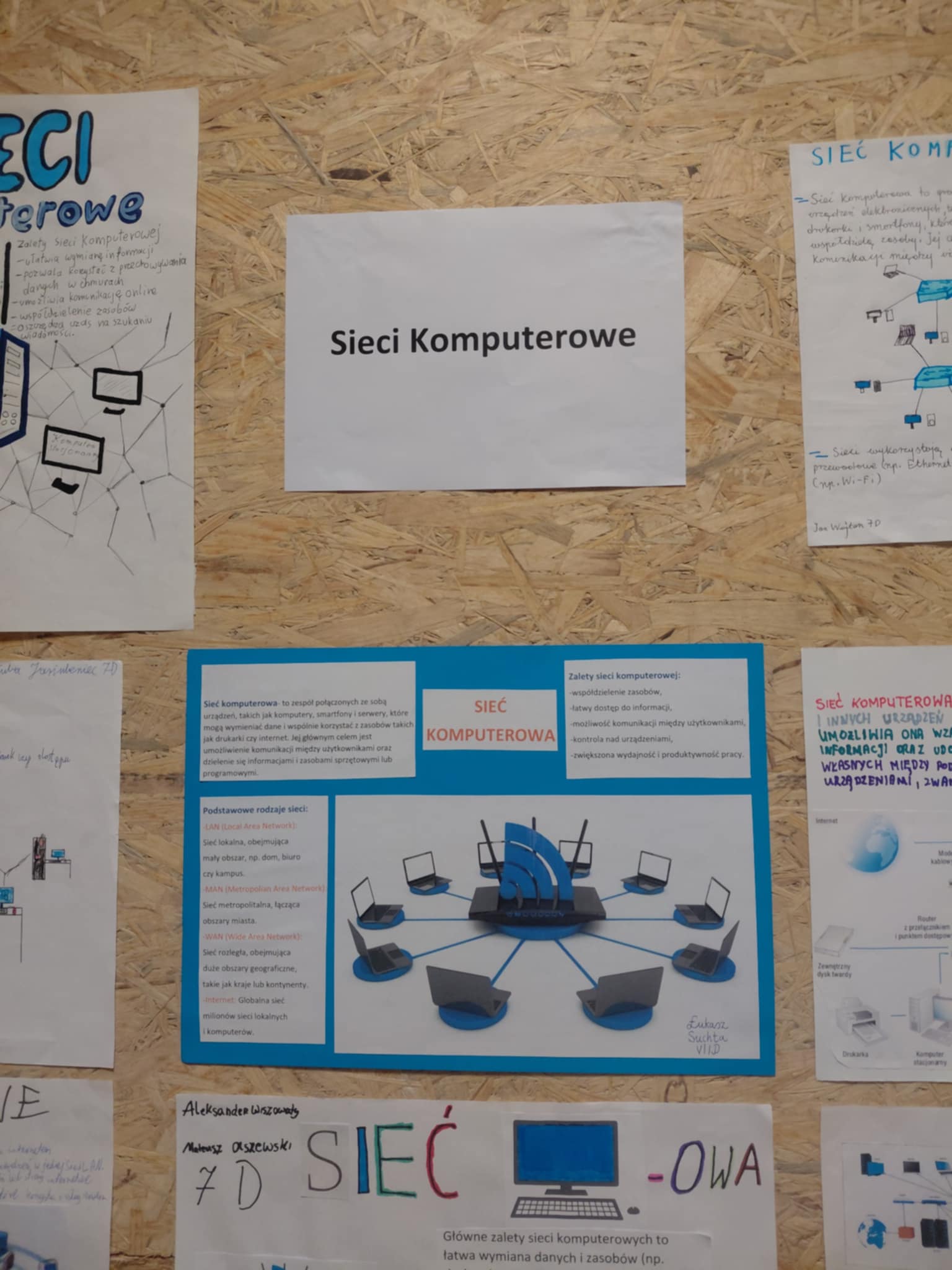 Uczniowie klasy 7d w ramach zajęć Informatyki przygotowali plakaty o Sieciach Komputerowych, które zostały powieszone na głównym holu w szkole. Wystawa ma na celu przedstawienie uczniom budowy i działania sieci komputerowych, które są podstawą działania Internetu.